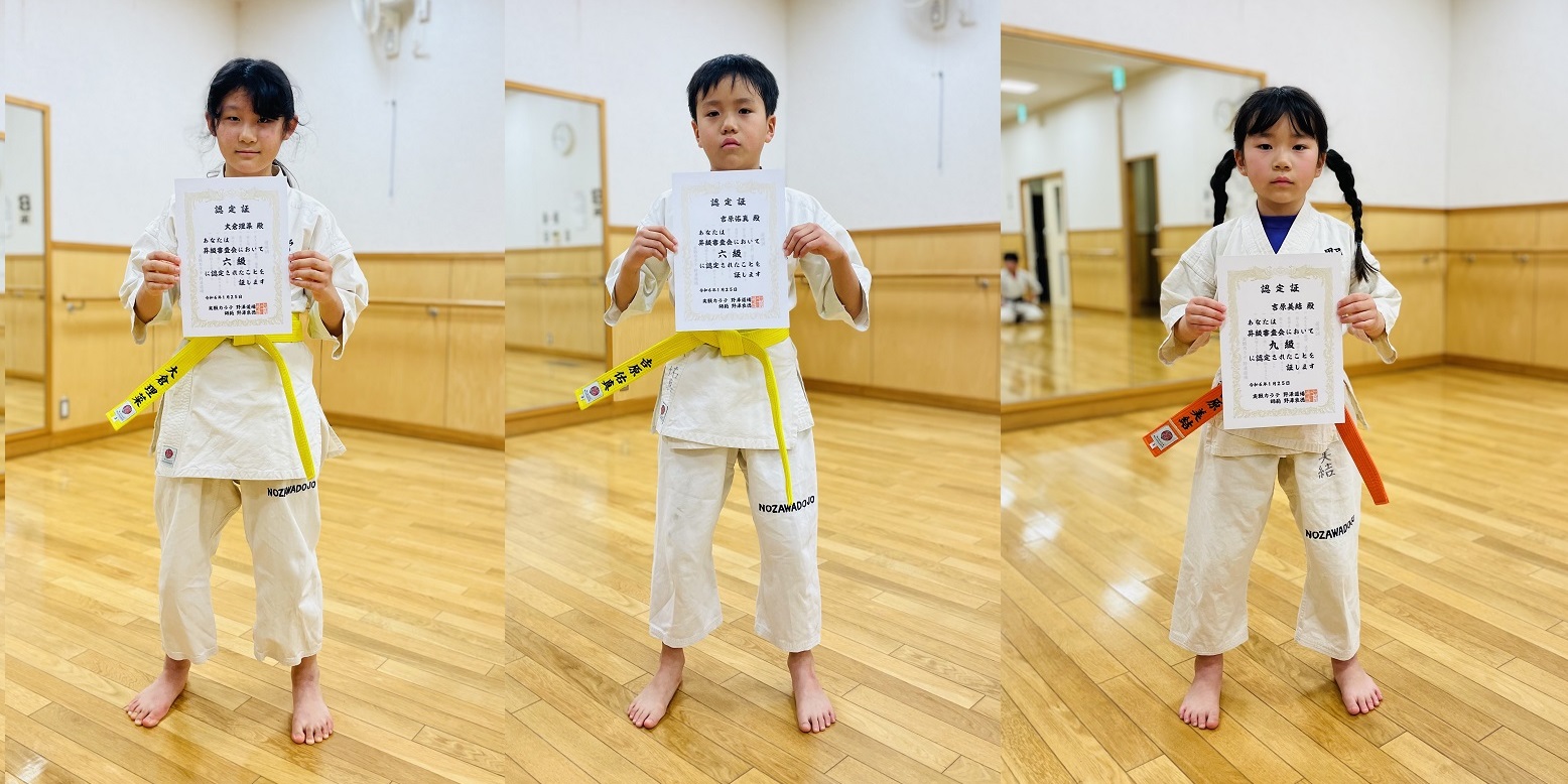 2024.7.28 昇級合格 九級・篠田 昊/八級・篠田 海/六級・渡辺彪斗 四級・大倉理菜/二級・結城 心